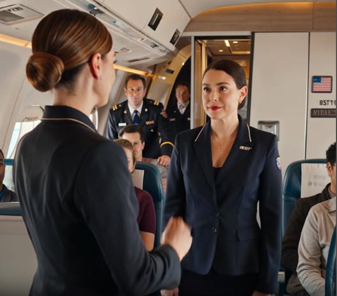 Toen ze opstond om te vertrekken, wierp ze nog een laatste blik op de cockpitdeur met een uitdrukking die bijna beschermend leek, alsof ze aarzelde om de voorkant van het vliegtuig te verlaten.