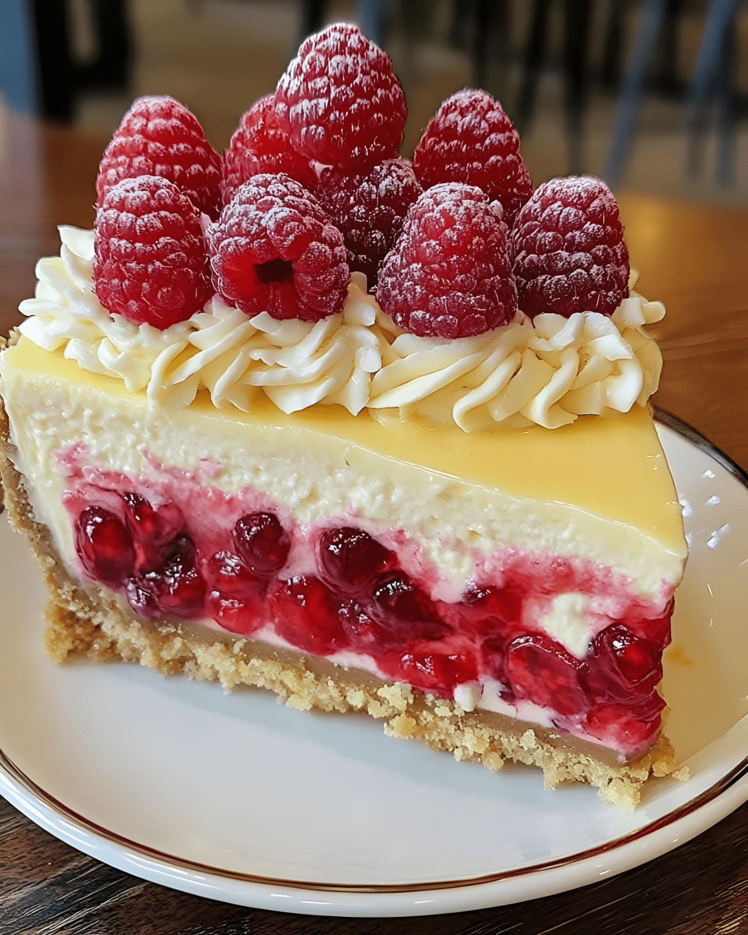 Verwen jezelf met deze rijke, romige en decadente cheesecake met een boterachtige bodem van Graham crackers, een gladde witte chocolade vulling en een pittige frambozensaus. Perfect voor speciale gelegenheden of gewoon wanneer je zin hebt in een elegant dessert!